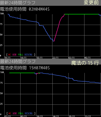 BatteryMix等で、設定前と後で変化するか記録したほうが良い。