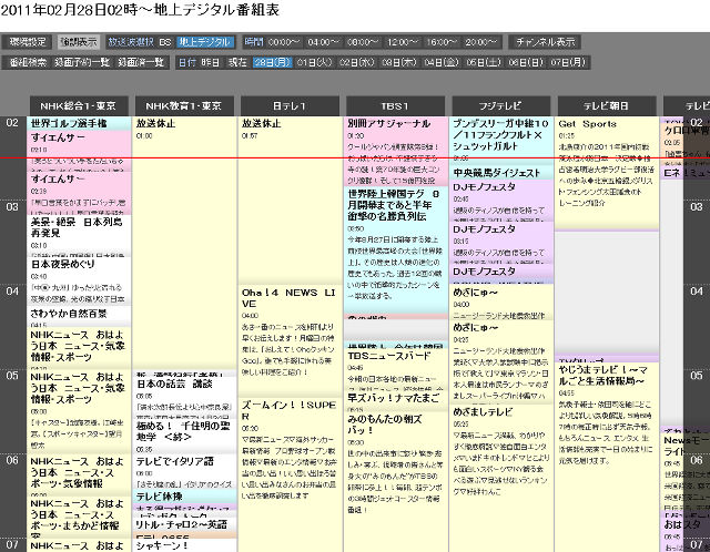 mysql> set names utf8; mysql> select channel,name from Recorder_channelTbl order by id; +---------+-----------------------------+ | channel | name | +---------+-----------------------------+ | 27 | NHK総合1・東京 | | 26 | NHKEテレ1東京 | | 25 | 日テレ1 | | 22 | TBS1 | | 21 | フジテレビ | | 24 | テレビ朝日 | | 23 | テレビ東京1 | | 20 | TOKYO MX1 | +---------+-----------------------------+