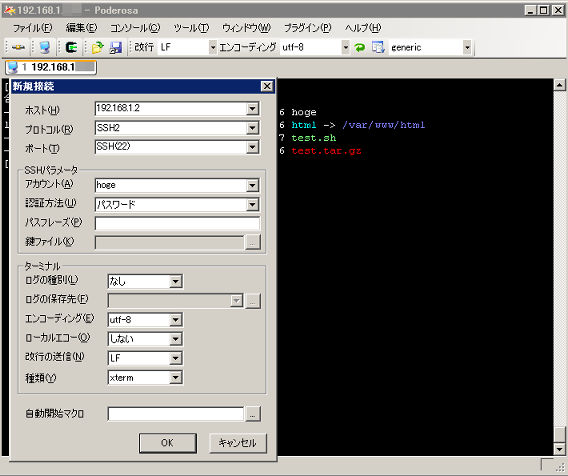 - 起動時の動作:Telnet/SSHダイアログを開く