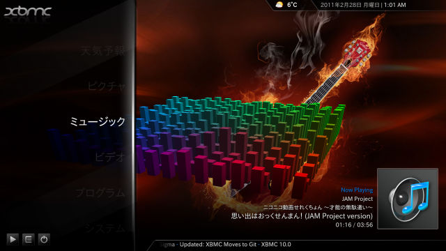 sudo apt-get update # team-xbmc版 sudo apt-get install xbmc xbmc-standalone # mario-sitz/ppa版 sudo apt-get install xbmc xbmc-bin sudo apt-get autoremove sudo reboot
